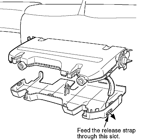12. Install the seat support inner cover, making sure to feed the release strap through the slot in the cover.