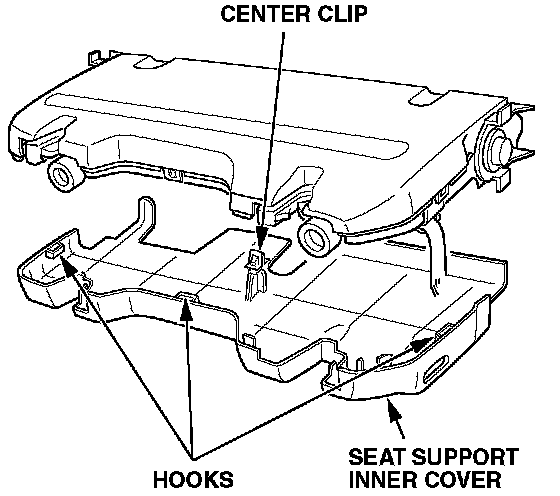 5. Remove the seat support cover by releasing the three hooks and detaching the center clip.