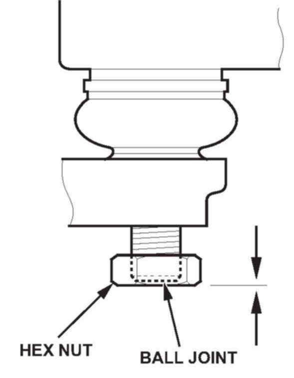 5. Install a hex nut or the ball joint thread protector onto the threads of the ball joint. Make sure the nut is flush with the ball joint pin end to prevent damage to the threaded end of the ball joint pin.