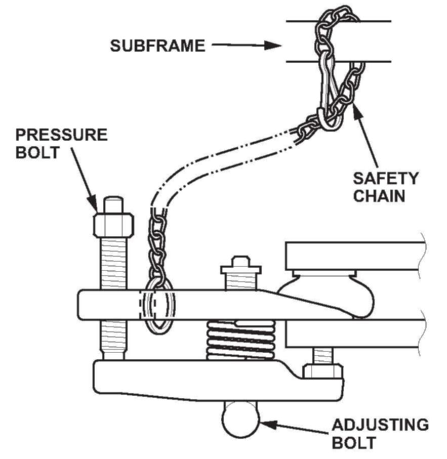 Fasten the safety chain securely to a suspension arm or the subframe. Do not fasten it to a brake line or a wire harness.