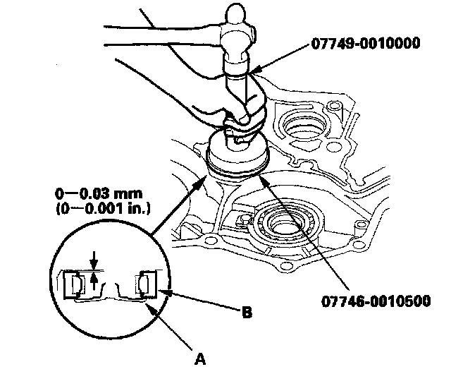 3. Install the new oil seal flush in the housing with the special tools.