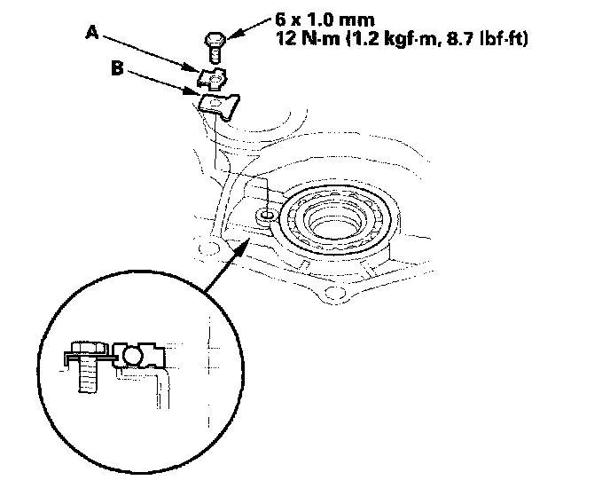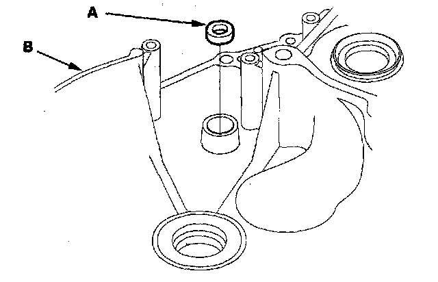 1. Remove the bolt, then remove the lock washer (A) and bearing set orate (B).