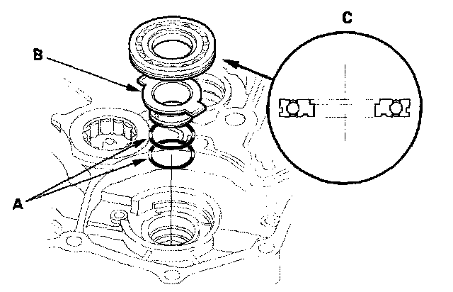 4. Install the new secondary shaft bearing (C) in the direction shown.
