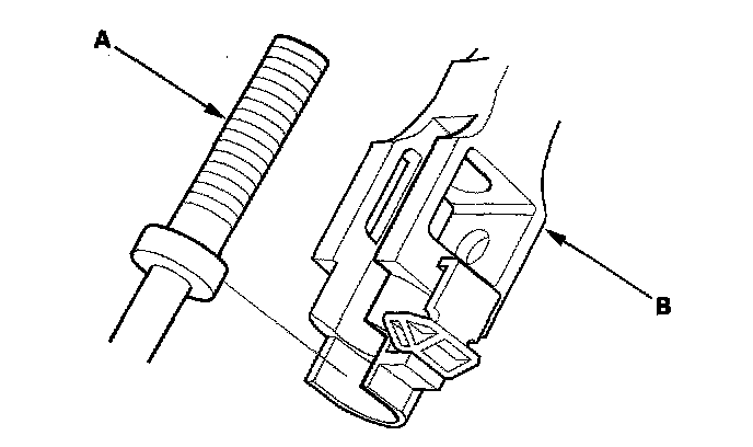 7. Separate the shift cable end (A) from the shift cable end holder (B).
