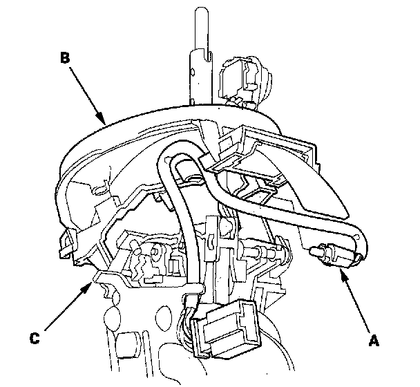11. Remove the O/D switch/shift lock solenoid connector (C), then disconnect the connector.