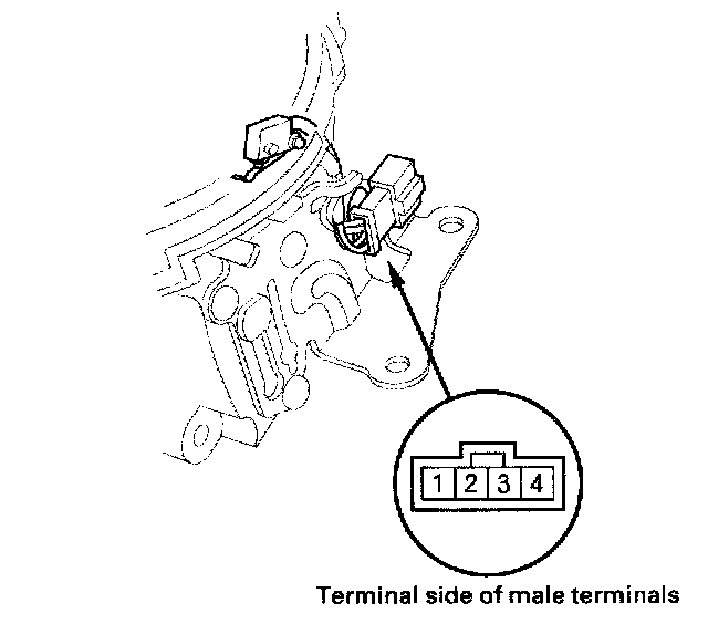 5. Shift out of the P position or press the shift lever button while in the P position, and check for continuity between connector terminals No. 1 and No. 2. There should be continuity.