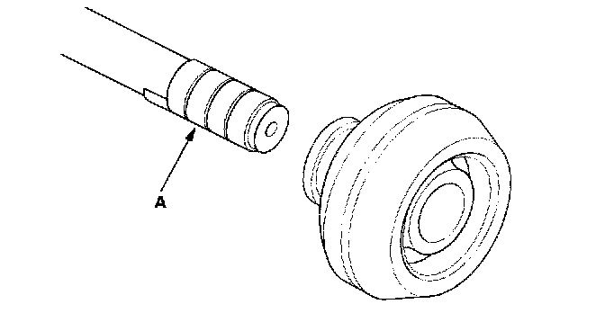 3. Wrap the splines on the driveshaft with vinyl tape (A) to prevent damage to the dynamic damper.