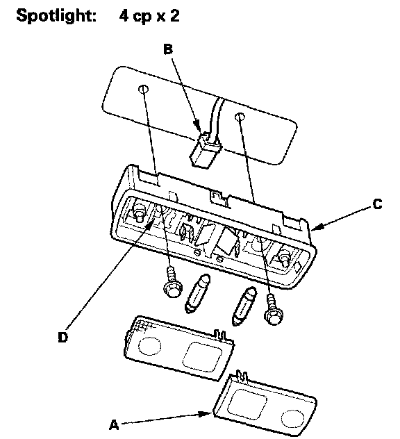 6. If the continuity is not as specified, check the bulb. If the bulb is OK, replace the spotlight assembly.