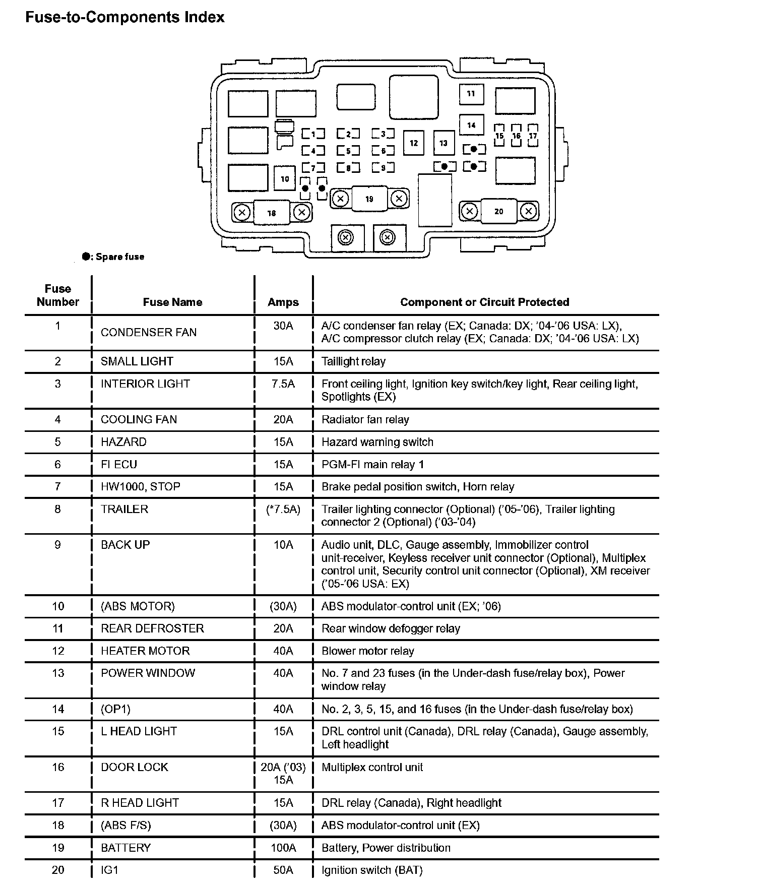 Under-hood Fuse/Relay Box (Part 1):
