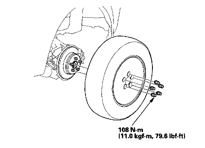 ^ Before installing the wheel, clean the mating surfaces of the brake disc/drum and the inside of the wheel.