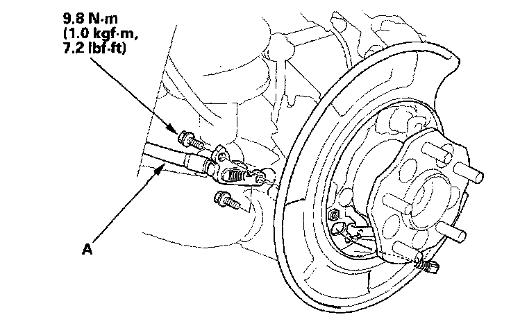 9. Remove the wheel sensor (A) from the knuckle (if equipped with ABS).