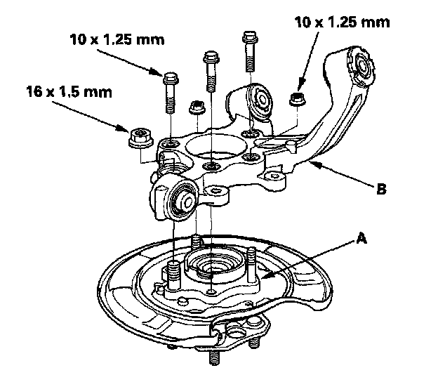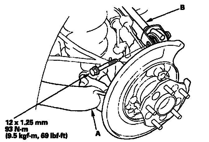 11. Remove the flange bolt, and disconnect the upper arm (B) from the knuckle.