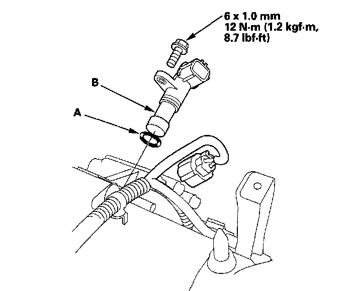 3. Install the new O-ring (A) on the mainshaft speed sensor, and install the mainshaft speed sensor (B) in the transmission housing.
