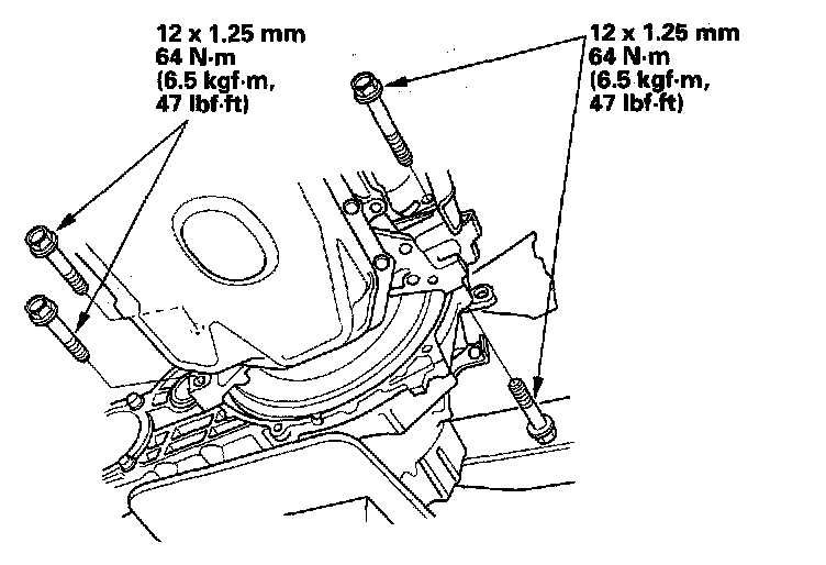 5. Install the two transmission lower mounting bolts.