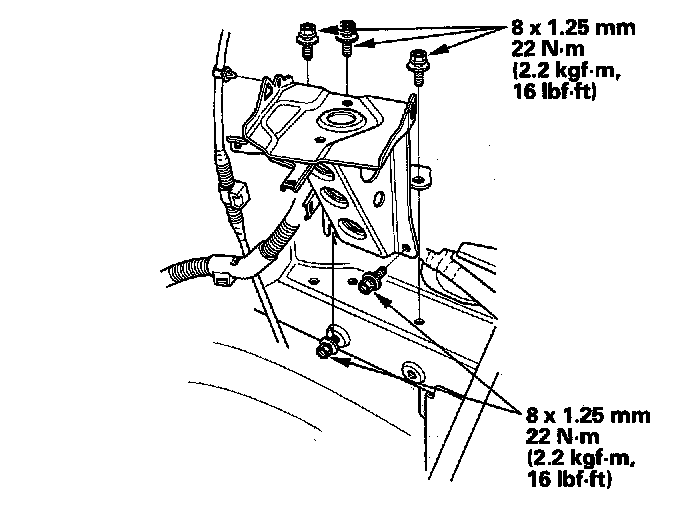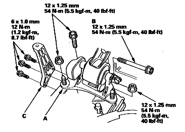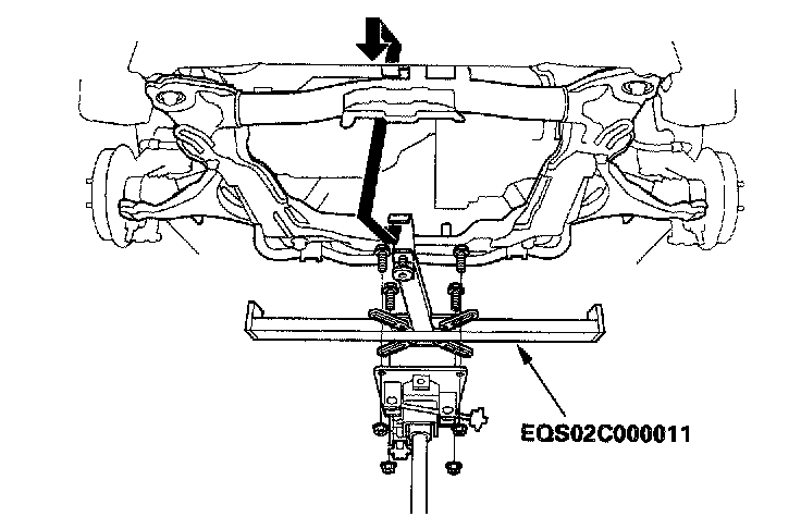 16. Loosen the front engine mount bracket mounting bolt, then tighten the front engine mount bracket mounting bolt.