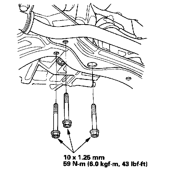 10. Install the three bolts for the transmission rear mount.