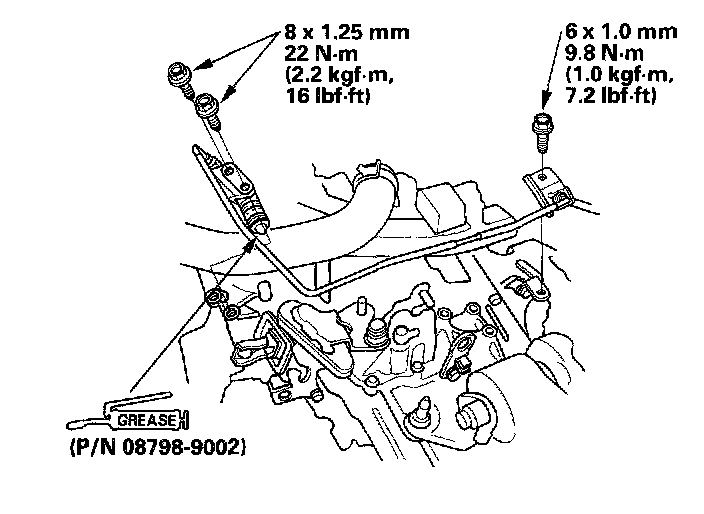 20. Apply super high temp urea grease (P/N 08798-9002) to the end of the cylinder rod. Install the slave cylinder. Be careful not to bend the clutch line.