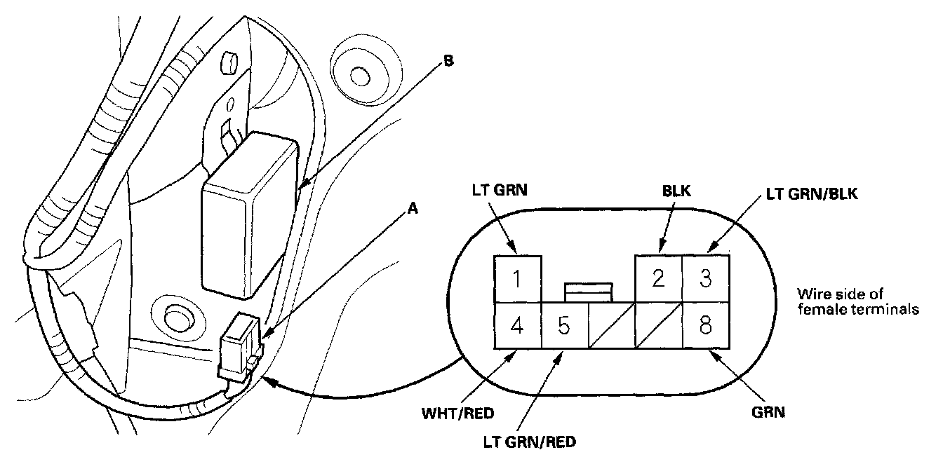 2. Disconnect the 8P connector (A) from the control unit (B).