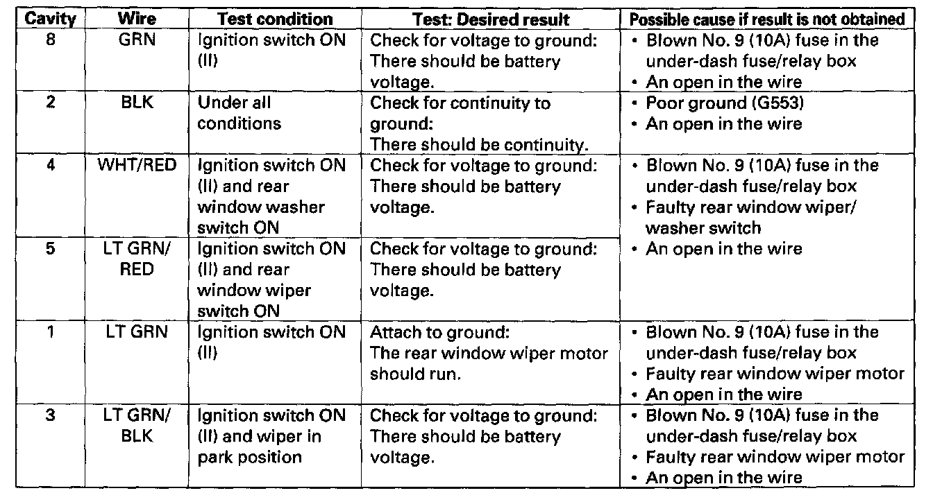 Rear Window Wiper Control Unit Input Test1. Remove the left rear side trim panel.