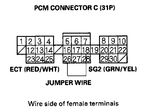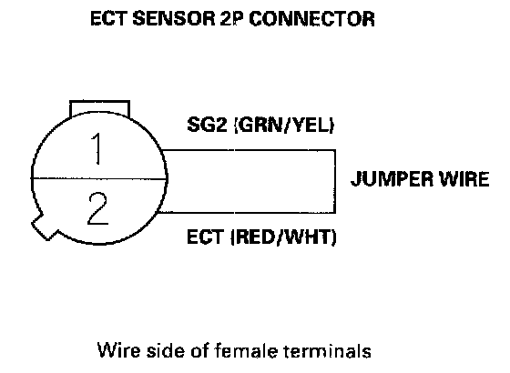 5. Connect ECT sensor 2P connector terminals No.1 and No.2 with a jumper wire.