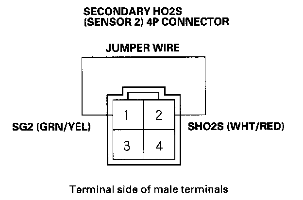 6. Connect secondary HO2S (Sensor 2) 4P connector terminals No.1 and No.2 with a jumper wire.