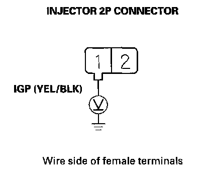 46. Measure voltage between injector 2P connector terminal No.1 and body ground.