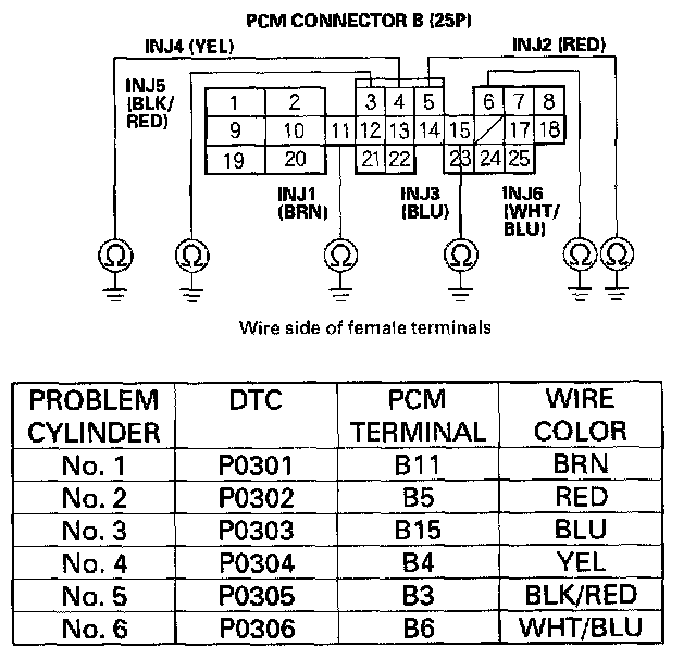 NO - Intermittent misfire due to injector malfunction, etc. Make sure the injector connections are secure. Check for poor connections or loose terminals at the injector connector.