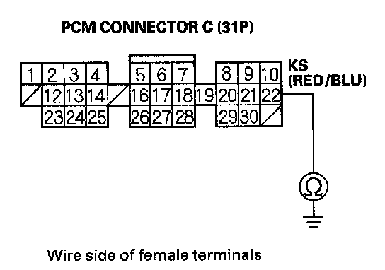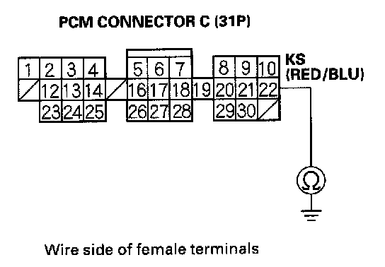 7. Check for continuity between PCM connector terminal C22 and body ground.