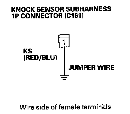 10. Check the knock sensor subharness between C161 and the knock sensor for an open or short. If it's OK, substitute a known-good knock sensor and recheck.