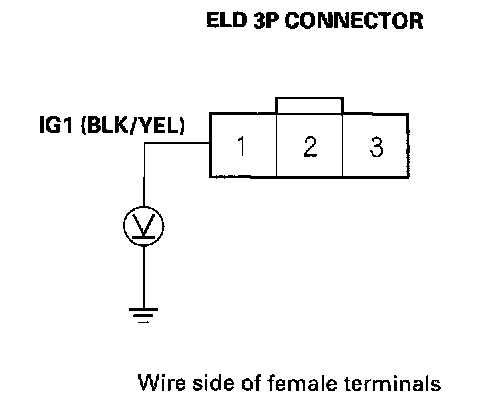 7. Measure voltage between body ground and ELD 3P connector terminal No.1.