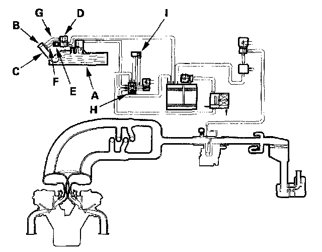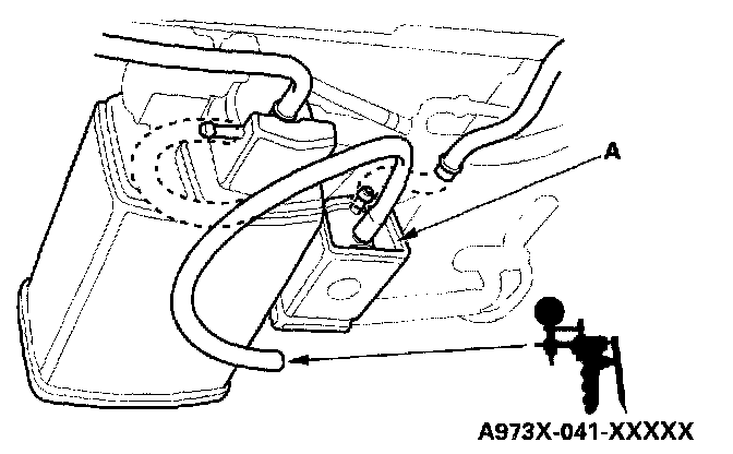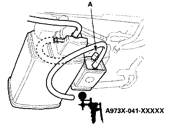 4. Disconnect both vacuum hoses from the EVAP two way valve (A), and connect a vacuum pump to the canister port on the EVAP two way valve.