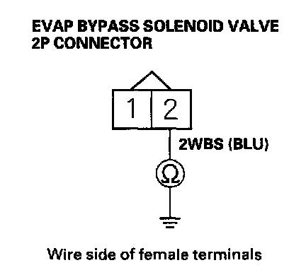 11. Check for continuity between EVAP bypass solenoid valve 2P connector terminal No.2 and body ground.