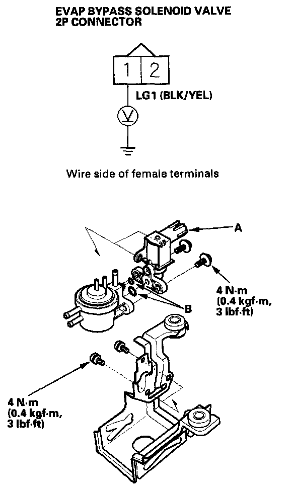 YES - Replace the EVAP bypass solenoid valve (A) and the O-rings (B).