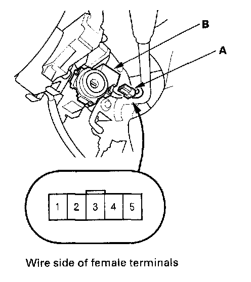 5. Disconnect the 5P connector (A) from the immobilizer control unit-receiver (B).