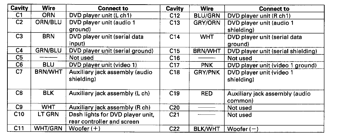 When replacing an audio unit connector, match the wires to the cavities listed in the table.
