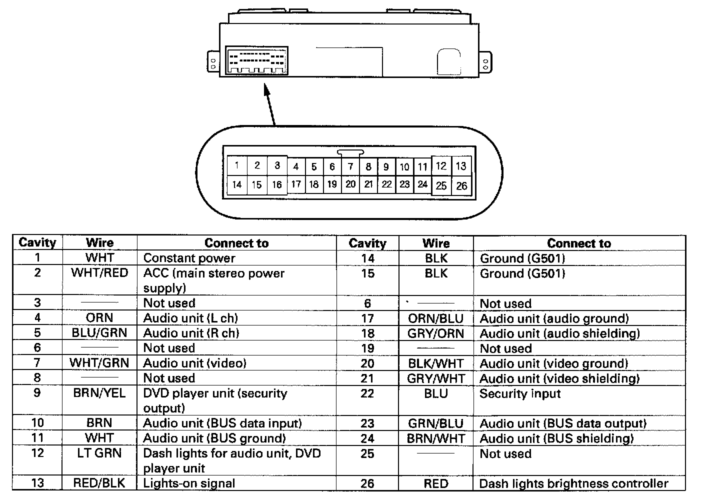 When replacing a rear controller and screen connector, match the wires to the cavities listed in the table.