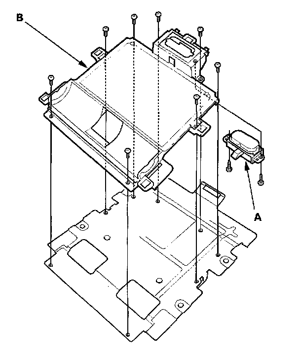 7. Remove the mounting screws from the lock switch (A) and base (B).