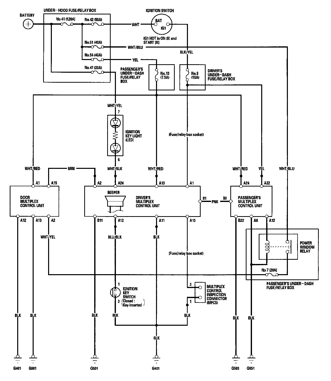 Multiplex Control System - Circuit Diagram (Power, Ground, Communication Lines):