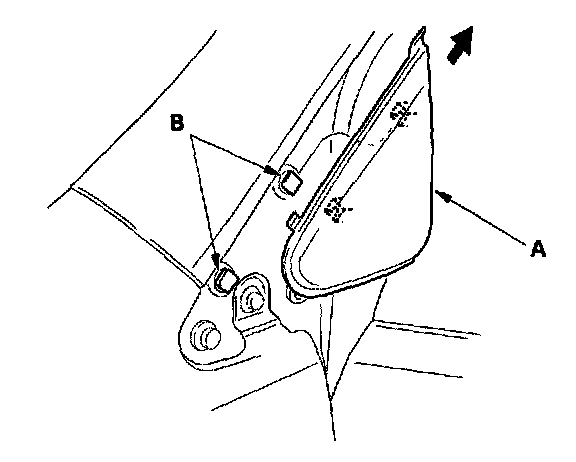 3. Gently slide the A-pillar corner trim (A) to release it from the clips (B).