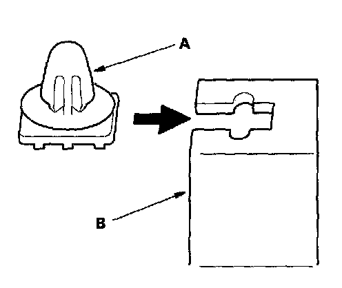 6. Install the clips (A) on the trim (B).
