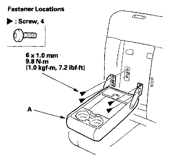 2. Using a Torx T30 bit, remove the screws, then remove the beverage holder/tray (A).
