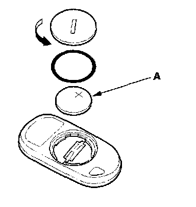 3. Replace the transmitter battery (A) with a new one, and try to lock and unlock the doors with the transmitter by pressing the lock or unlock button five or six times.