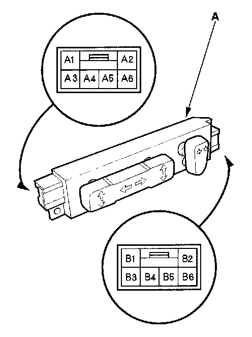 2. Disconnect the 6P connectors from the power seat adjustment switch (A).