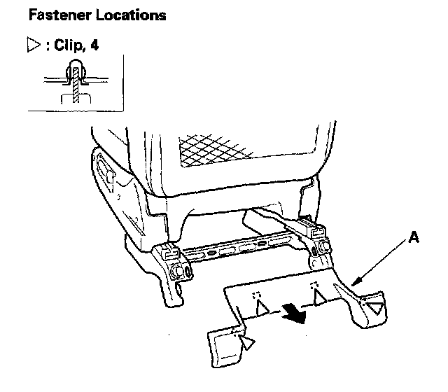 Front Seat Removal/InstallationSRS components are located in this area. Review the SRS component locations and the precautions and procedures before performing repairs or service.