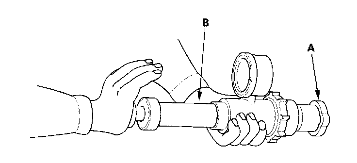 Test1. Remove the radiator cap (A), wet its seal with engine coolant, then install it on a commercially available pressure tester (B).