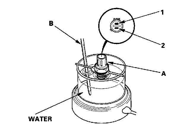 2. Suspend each radiator fan switch (A) in a container of water as shown.