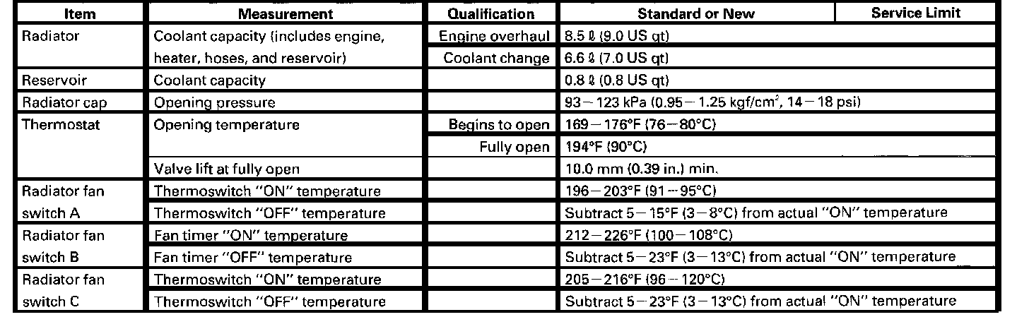 Cooling System: Specifications
