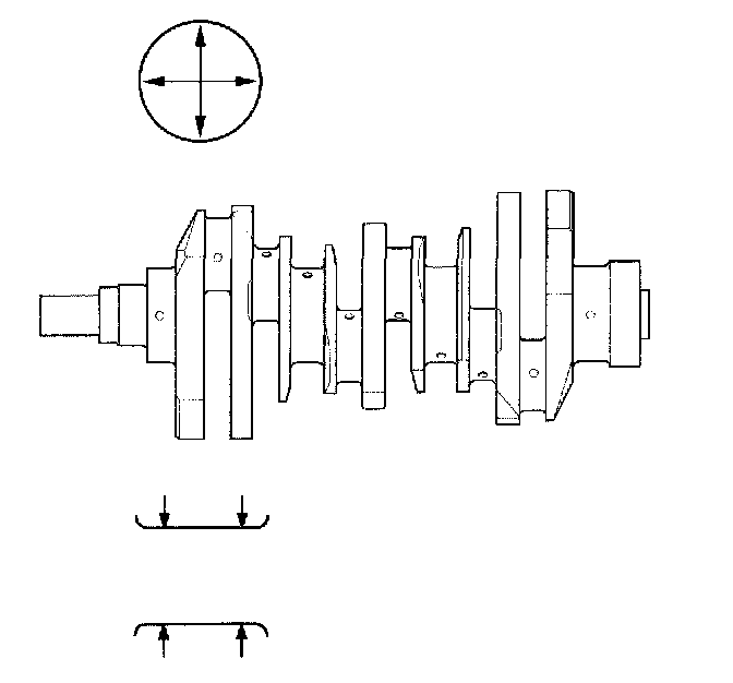 4. Measure out-of-round at the middle of each rod and main journal in two places. The difference between measurements on each journal must not be more than the service limit.