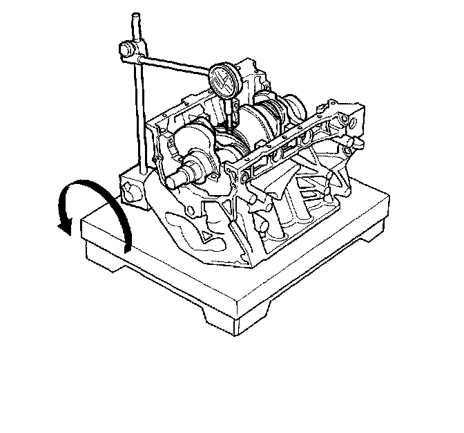 9. Measure runout on all main journals. Rotate the crankshaft two complete revolutions. The difference between measurements on each journal must not be more than the service limit.
