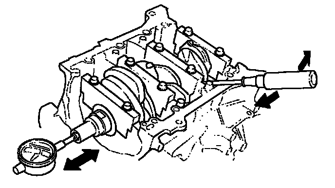 6. If end play is excessive, replace the thrust washers and recheck. If it is still out-of-tolerance, replace the crankshaft.
